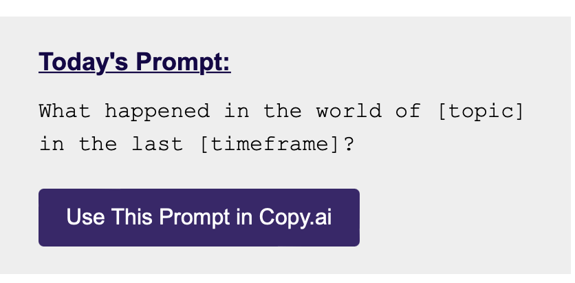 We also suggest Copy.AI, which has a great feature that allows you to catch up on the most important news on a certain topic.