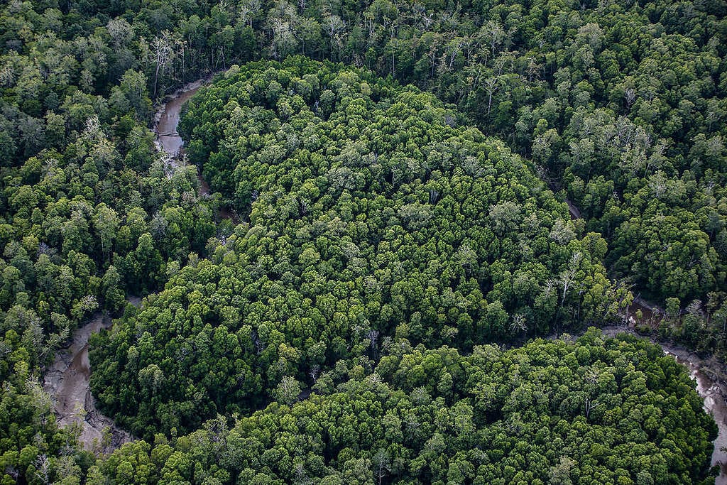 Aerial view of primary forest near the river Digul in southern Papua. Credit: Ulet Ifansasti / Greenpeace